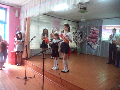 Праздник Последнего звонка. Из девятого класса выпуснилось десять учащихся. Посдедний звонок 2015 года дали сестры Макарова Анна (9 класс) и Макарова Надежда (1 класс).