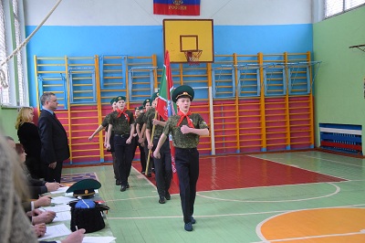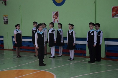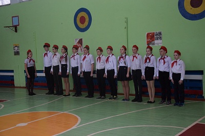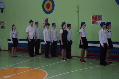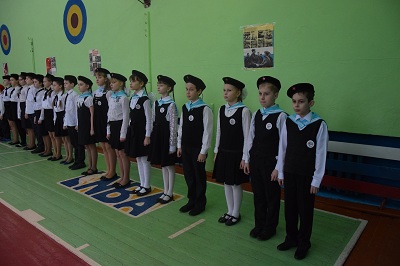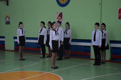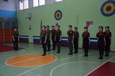 19 февраля 2016 года в школе прошел традиционный смотр строя и песни "Хорош в строю - силен в бою". Ребята продемонстрировали умение ходить строевым шагом, выполнять строевые приемы (повороты на месте и в движении, выход из сроя, перестроения, др.).