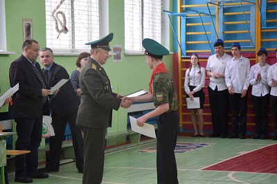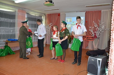 Представители пограничной династии Шмагриных вручили грамоты и ценные подарки победителям и призерам конкурса, а также выпускникам школы.